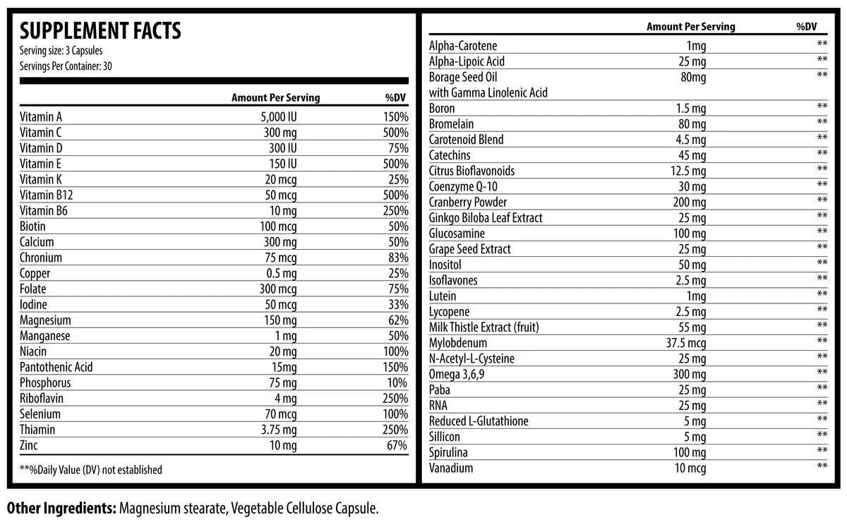 All In one multivitamin packed with your essential vitamins, minerals, and antioxidants.