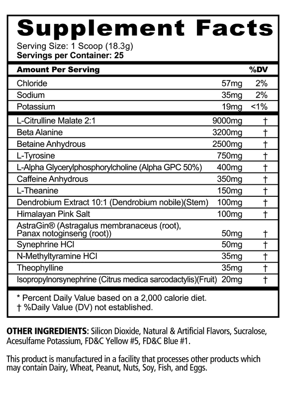 As an added bonus, Pandamic Extreme includes 100mg of Dendrobium Extract 10:1, a powerful natural ingredient known for its potential benefits in energy, focus, and mood elevation. This extract further amplifies the overall impact of the pre-workout, leaving you feeling energized, motivated, and ready to conquer any challenge that comes your way.