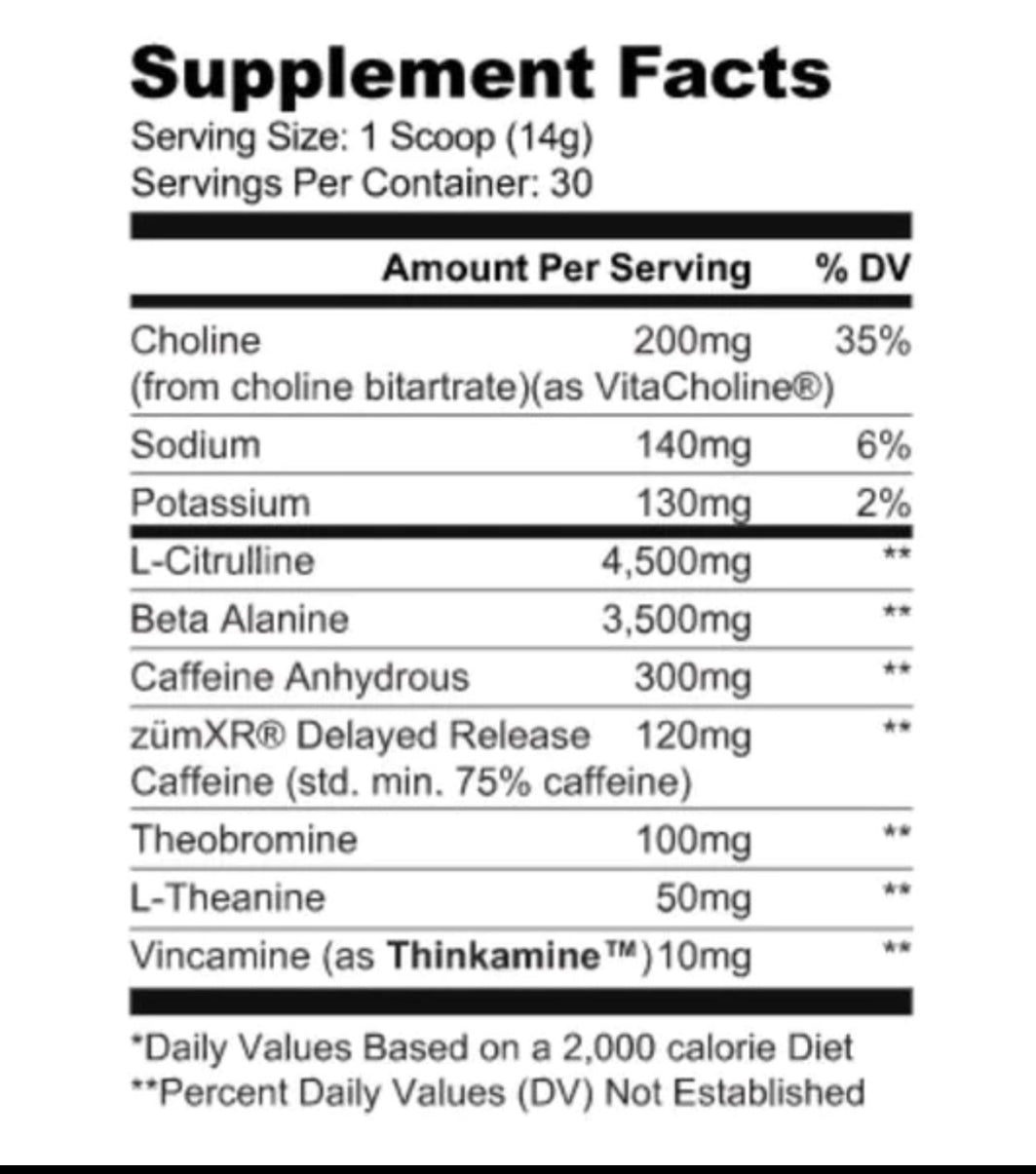 - 3.5G of Beta Alanine to push through muscle fatigue