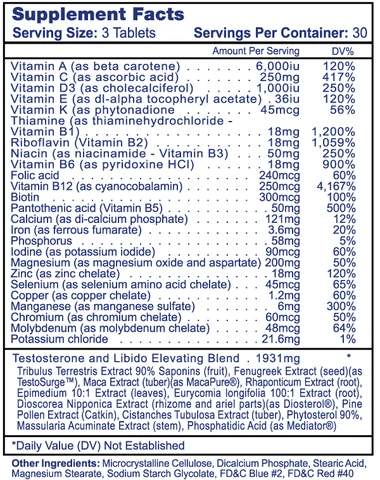 Testovite - is also the first Multi-Vitamin/Mineral Supplement designed to give you a daily dose of testosterone boosting compounds at ethical levels. It also has an array of herbal extracts to increase libido on a daily basis! The first component is a potent tribulus terrestris extract with an industry leading 90% saponin content. Tribulus may provide numerous desired benefits for athletes. Athletes in the powerlifting arena have historically used Tribulus to support their performance. The most sought after benefits of Tribulus are powerful support for muscle mass and strength, overall power and performance, and more efficient recovery. With the added bonus that Tribulus also has been associated with supporting mood and libido.