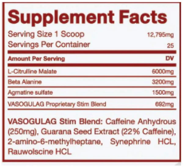 L-citrulline, Beta Alanine, 2Amino6, Agmatine sulfate, Caffeine Anhydrous (250mg) Guarana Seed Extract,