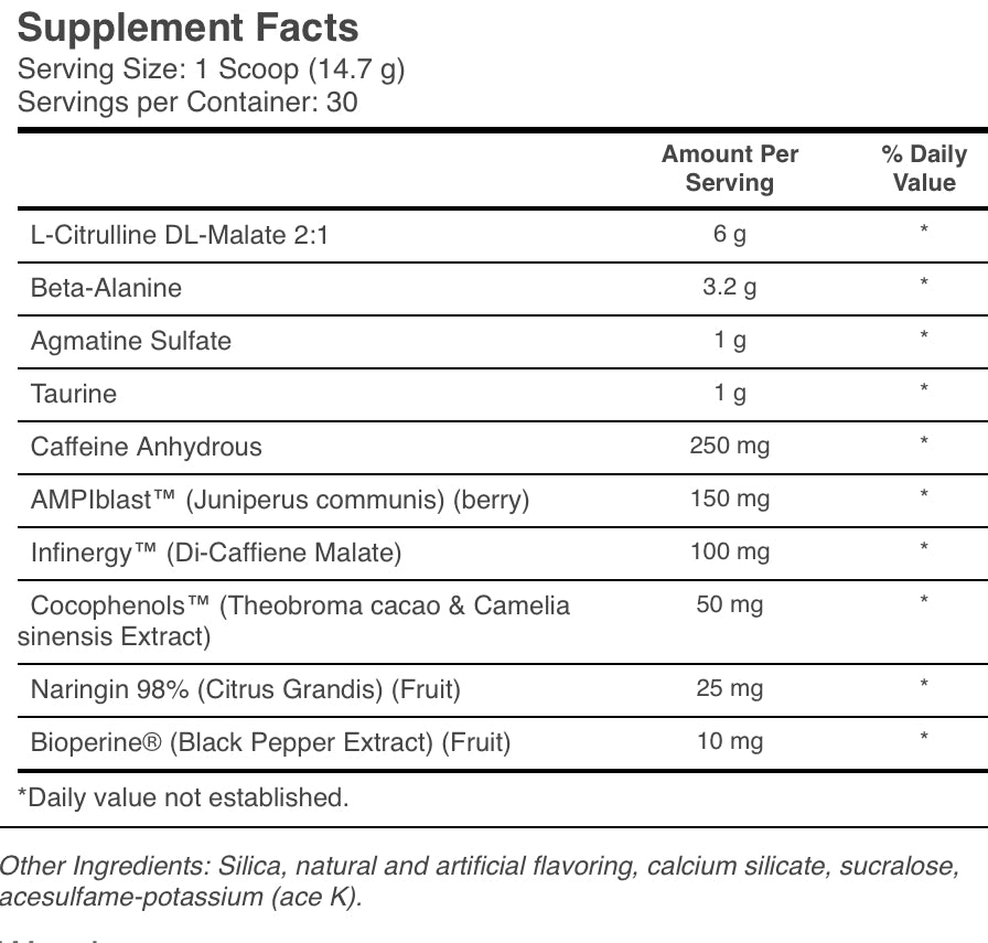 When it comes to bring the noise for a workout, assess your tolerance by taking ½ scoop prior to training. Once your tolerance is assessed mix (1) scoop with 4-6 ounces 30 minutes prior to training. Do not exceed more than (1) scoop per day.